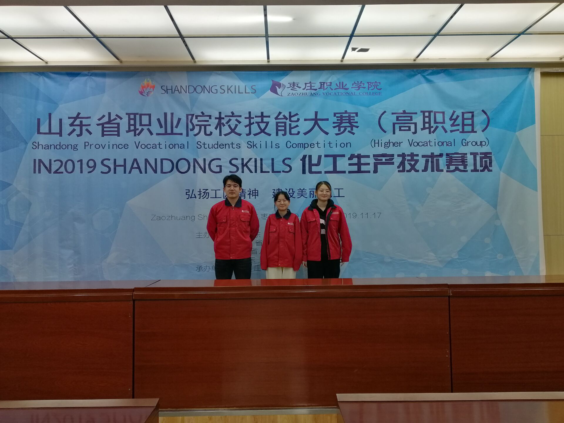 11月15日到17日,山东省职业院校技能大赛“化工生产技术”赛项在山东枣庄职业学院隆重举行。我校能源工程学院李瑞梅、吴莉芳老师指导的学生李洋、吕海波、韩晓飞荣获三等奖,做为前7名的队伍同时入选2020年山东省国赛集训队,集训结束后将进行选拔,胜出的队伍将代表山东省征战2020年的全国职业院校技能大赛。