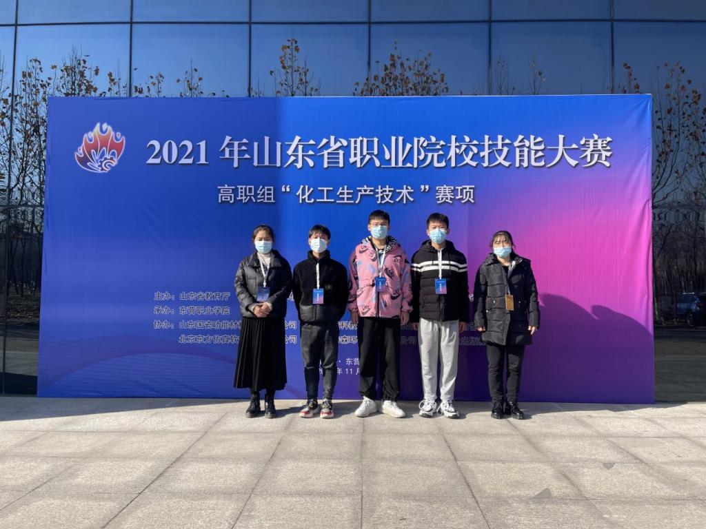 11月23日至25日,2021年山东省职业院校技能大赛(高职组)“化工生产技术”赛项在东营职业学院举行。我校必威西汉姆官网平台教师李瑞梅、吴莉芳指导的学生李凯心、翟永康、司洪龙荣获团体三等奖。