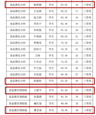 9月29日,山东省“技能兴鲁”职业技能大赛——第五届食品行业职业技能竞赛在威海海洋职业学院落下帷幕,我院巩波、赵静静老师指导的23级食品营养与健康专业的梁梦圆、徐慈晗、王新宇、曹芷诺四位同学进入决赛,本次决赛共有来自全省22个职业院校100余名选手参与角逐。经过两天的激烈比拼,在食品理化分析赛项中,梁梦圆、徐慈晗均荣获三等奖。王新宇、曹芷诺两位同学在食品微生物检测赛项中均荣获三等奖。四位同学取得的优异成绩,充分体现了我院师生在理论教学和实践能力培养方面的显著成果。