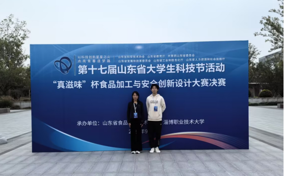 9 月 27 日,第十七届山东省大学生科技节 “真滋味” 杯食品加工与安全创新设计大赛决赛在淄博职业技术大学顺利收官。由巩波、赵静静两位老师指导,石莹宵、董薇、生润和同学组成的参赛团队,凭借作品《食全“纤”美 —— 一种多级细化纤维素工艺赋能健康食品创新》脱颖而出,最终斩获大赛二等奖,充分彰显了我校学子扎实的专业功底与突出的科创实践能力。