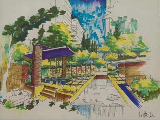 任课教师滕瑞红说,本次写生是对钢笔、马克笔和彩铅技法的综合运用,同时也很好的完成了本学期的学习任务。后期,将进一步加大写生力度,将理论和实践紧密结合,让园林手绘更好的服务于现代园林景观设计。