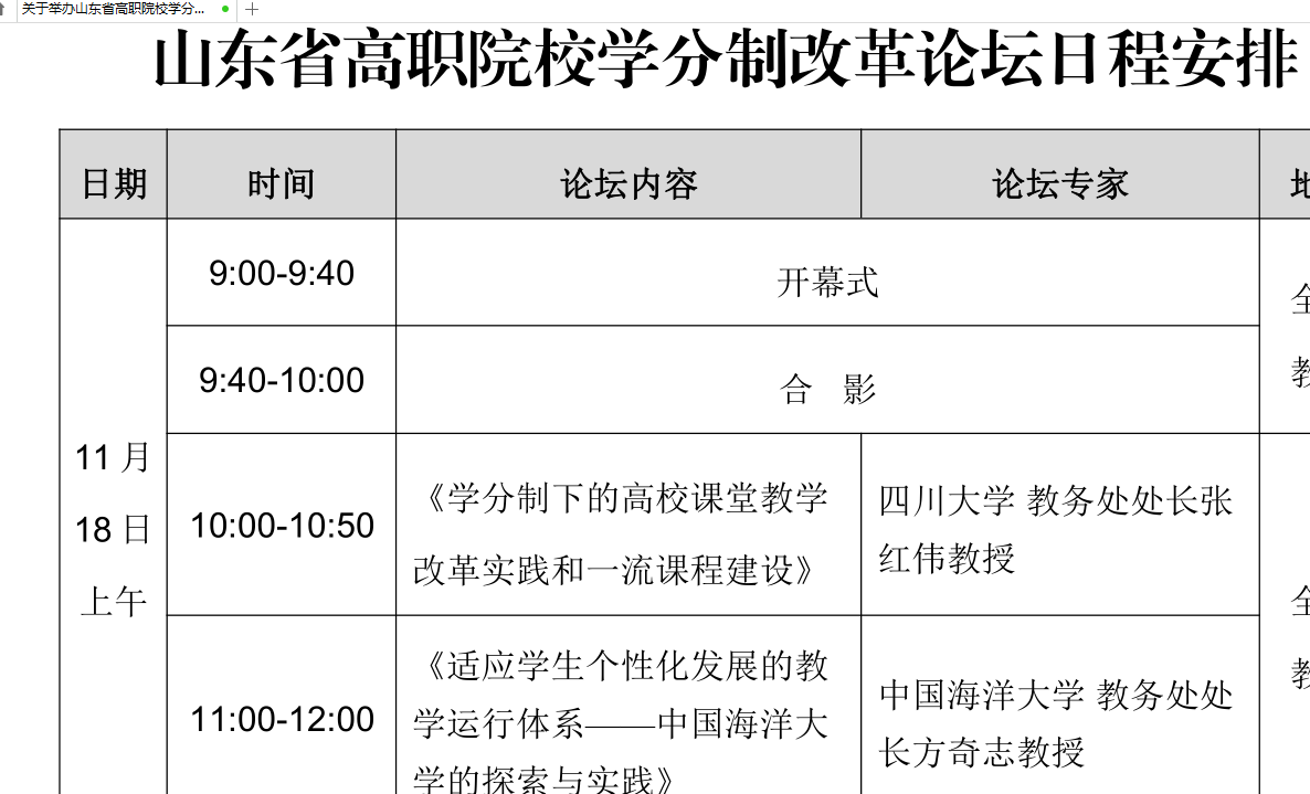 为落实“全面实施弹性学习和学分制管理”要求,依据省教育厅会议通知要求,按照学校工作安排,现将参加“山东省高职院校学分制改革”论坛的具体事项通知如下: