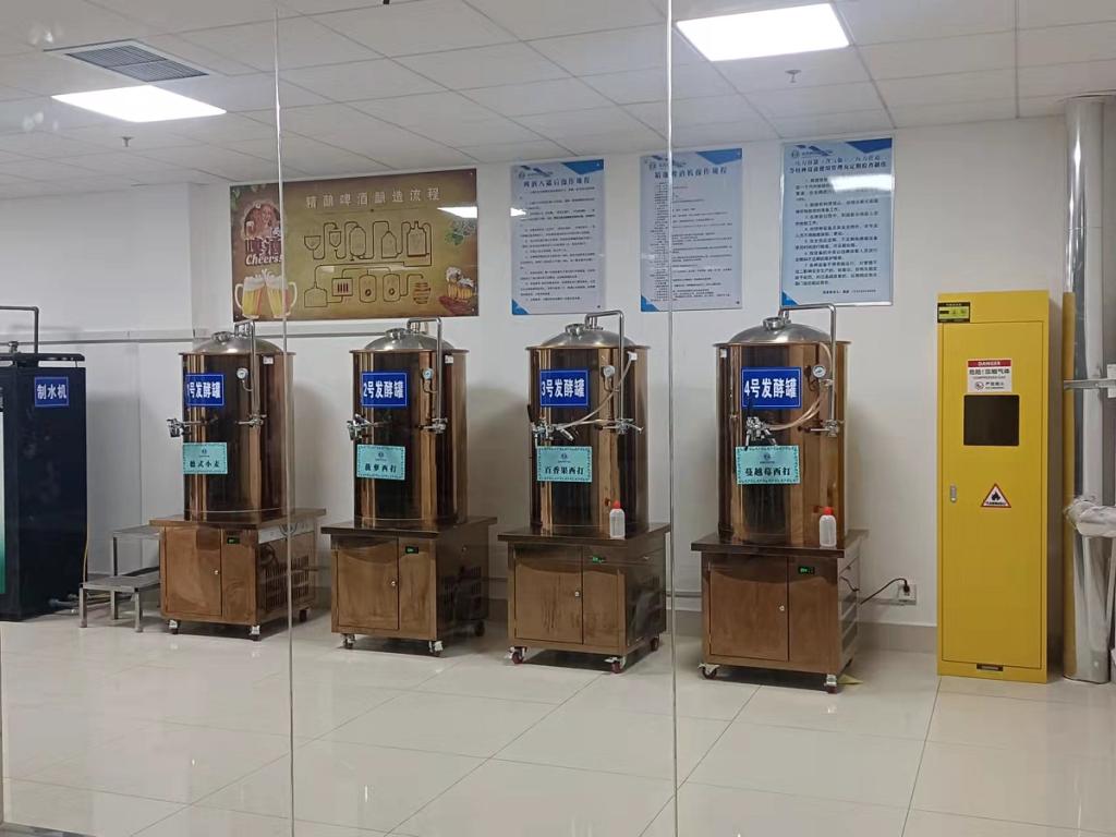 11.25日发酵实训室改造工程正式完工,在原有基础上进行了规划重新设计,将啤酒酿造区与教学区进行钢化玻璃隔断,设置消毒缓冲间对进入人员进行消毒,酿造洁净区设置酵母接种间和原材料储物间,增加紫外灯定期消毒。改造后的发酵实训室将进一步将啤酒酿造实训与课程结合,不断提高学生动手能力和技能水平。