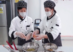2021年4月,我院与山东欧米奇西点西餐学院开展烘焙技能培训合作,食检专业李梦璐、于子茹两位同学到达济南开启了烘焙技能学习之旅。这期间在保证她们安全的情况下,对她们的学习提出了更高的要求。每天一汇报,每周一总结,产品配方、制作流程、注意事项等都要求他们手写记录。值得骄傲的是2位同学出色的完成了学习任务,并取得了毕业证书。我相信那厚厚笔记本,上面满满的字,正是她们青春的最美颜色。
