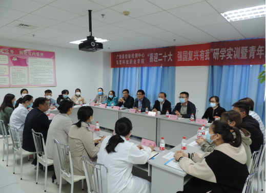 10月13日,“喜迎二十大,强国复兴有我”研学实训暨青年座谈会议在县检验检测中心办公楼5楼会议室举办,此次党建交流会议主题为“喜迎二十大,强国复兴有我",发挥青年人才在食品检测中的优势。县检验检测中心主任党组书记、主任钟玉倩主持会议,县检验检测中职工代表8名、必威西汉姆官网平台院长贺海明、副院长向青和以及教师代表5人、食品专业学生代表8人共同参加了本次会议。
