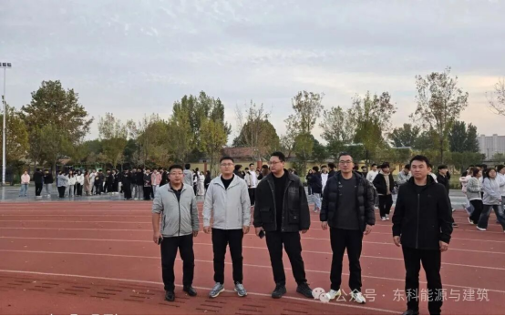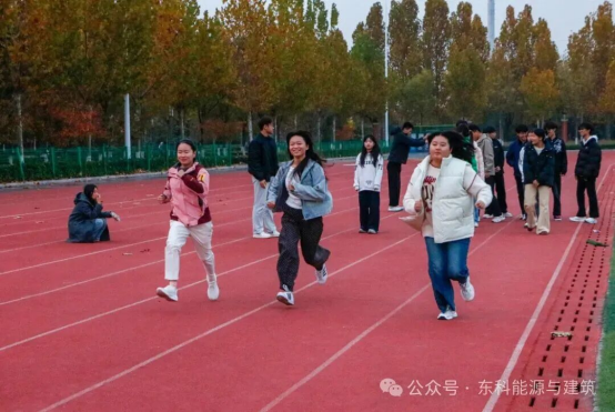 训练现场热闹而有序,各项目训练区划分明确、高效运转。训练中,各班级分组推进,同学们积极配合、紧跟节奏,辅导员们则穿梭在各个训练场地,既是“陪练员”也是“引导员”:面对800米等挑战性项目,他们陪着学生慢跑热身、加油鼓劲;指导立定跳远时,亲身示范动作要领,纠正发力偏差;看到学生体力不支,及时递上水和毛巾,耐心疏导压力。同学们在老师的陪伴下更添动力,有人奋力冲刺提升速度,有人反复练习打磨动作,有人结伴慢跑增强耐力,操场上处处是全力以赴的身影,师生同心的画面格外暖心。