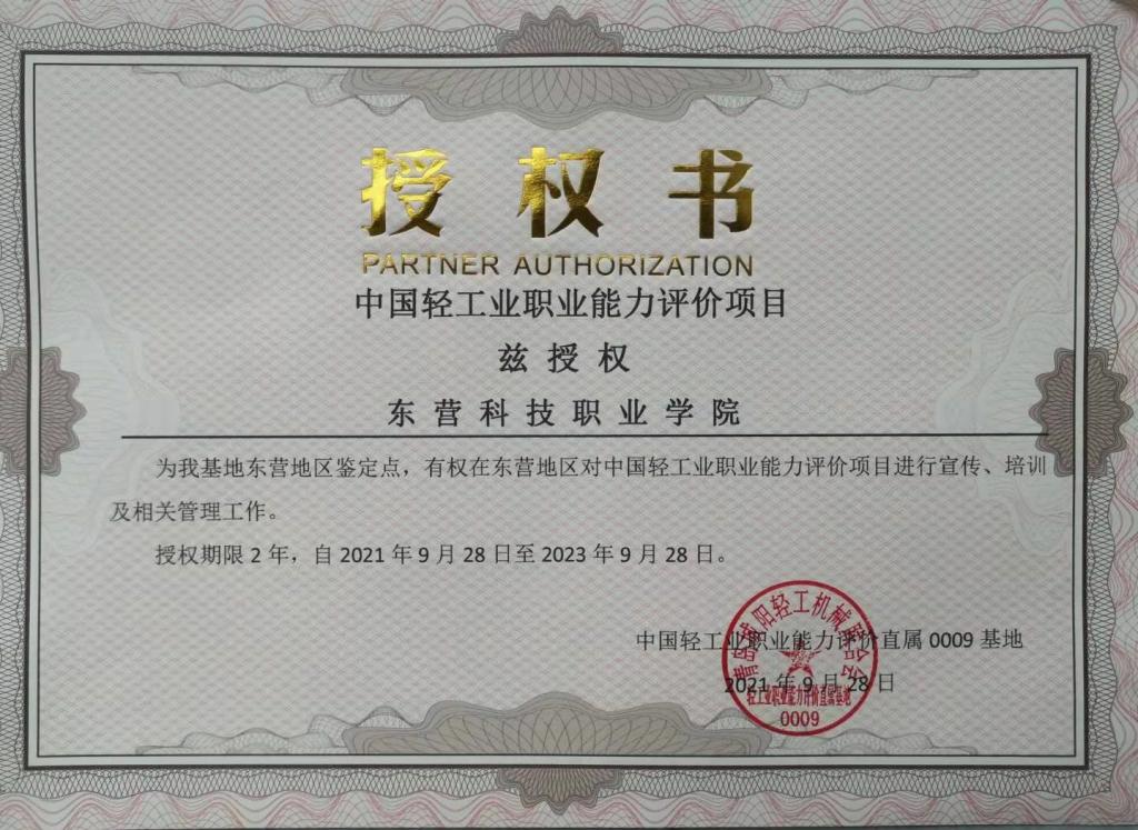 经中国轻工业职业能力评价直属基地授权,bw必威西汉姆联成为东营地区中国轻工业职业能力评价鉴定点,获得东营地区对中国轻工业职业能力评价项目的宣传、培训及相关管理工作。